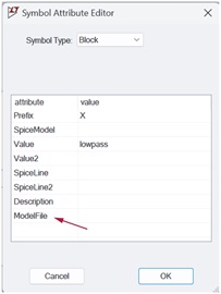 在LTspice中打開新符號後,符號上點擊右鍵兩下,並選擇 Attributes > Edit Attributes(屬性 > 編輯屬性)。 刪除添加至 ModelFile 屬性的任何路徑資訊,以提高此符號的可移植性。 選擇 OK確定,然後按Save儲存。