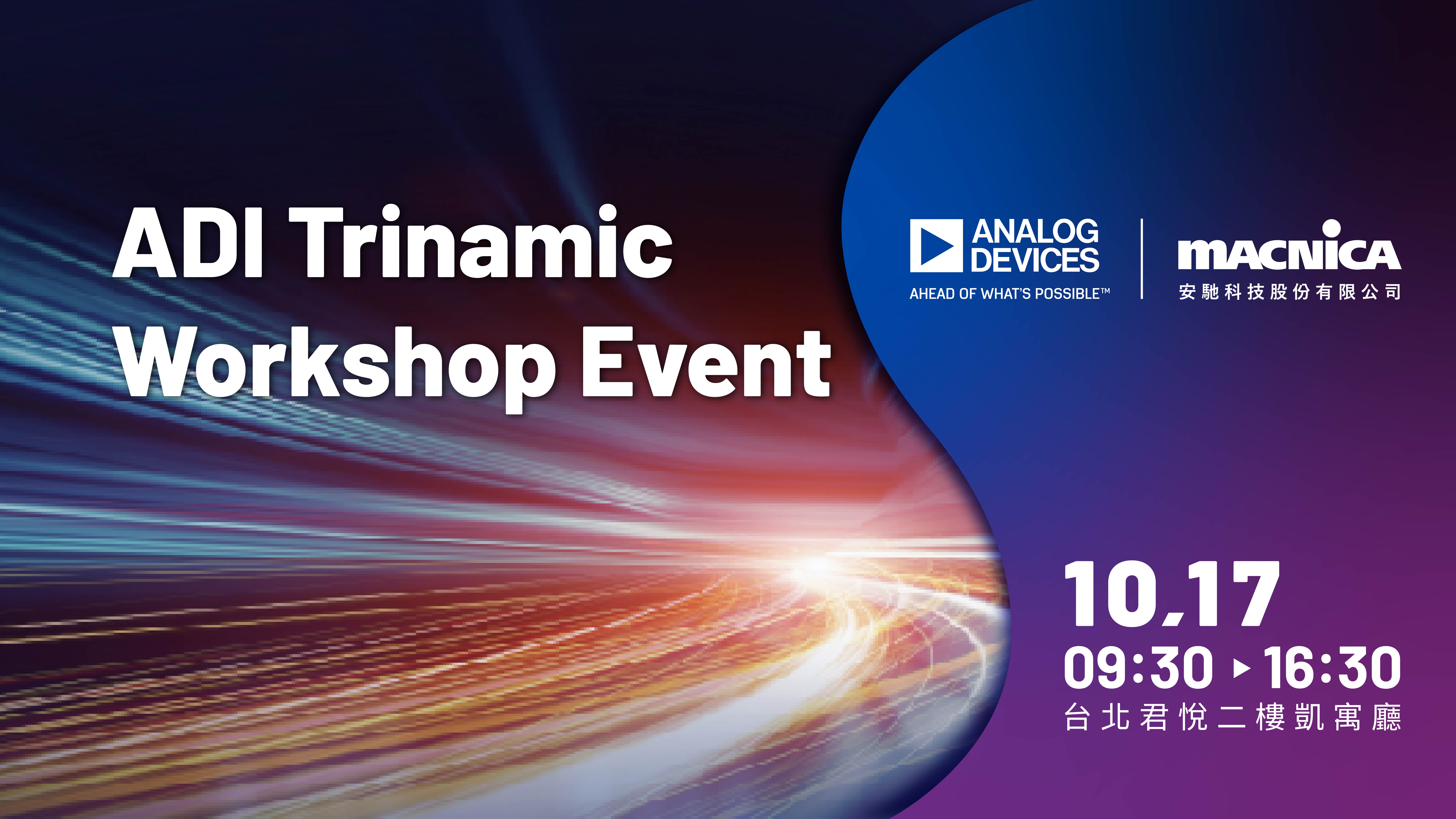 本場由 ADI 與安馳科技共同主辦的實作坊,將由多位技術專家帶您深入探討 ADI Trinamic先進馬達驅動與控制技術,課程精心設計,從精關的方案介紹,到手把手的實戰演練,必定讓您在產品設計的道路上無往不利,走在技術最前端!